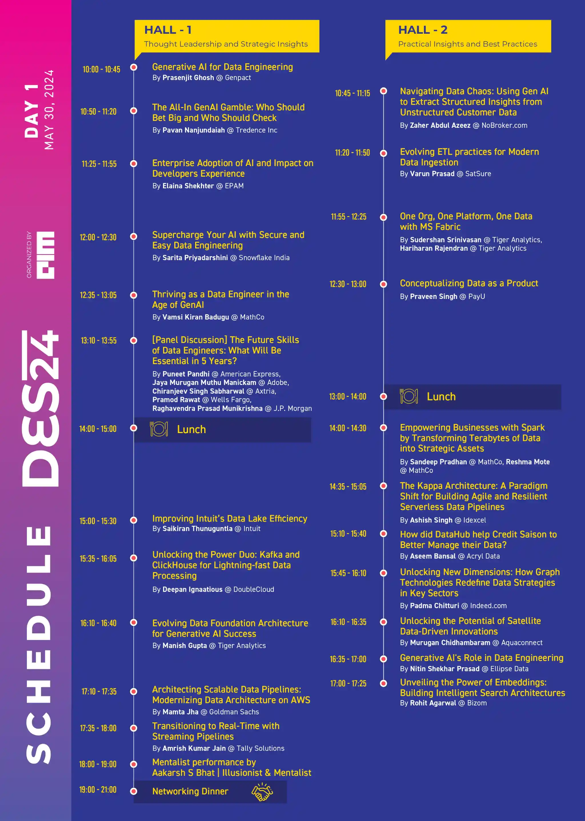 Get ready for the 3rd Edition of the Data Engineering Summit in 2024, a not-to-be-missed event spanning two action-packed days, featuring two distinct tracks designed to cater to a wide array of interests and expertise in the field of data engineering. This summit promises to be an immersive experience, combining enlightening keynote speeches, interactive workshops, and in-depth panel discussions led by renowned industry leaders and innovators.